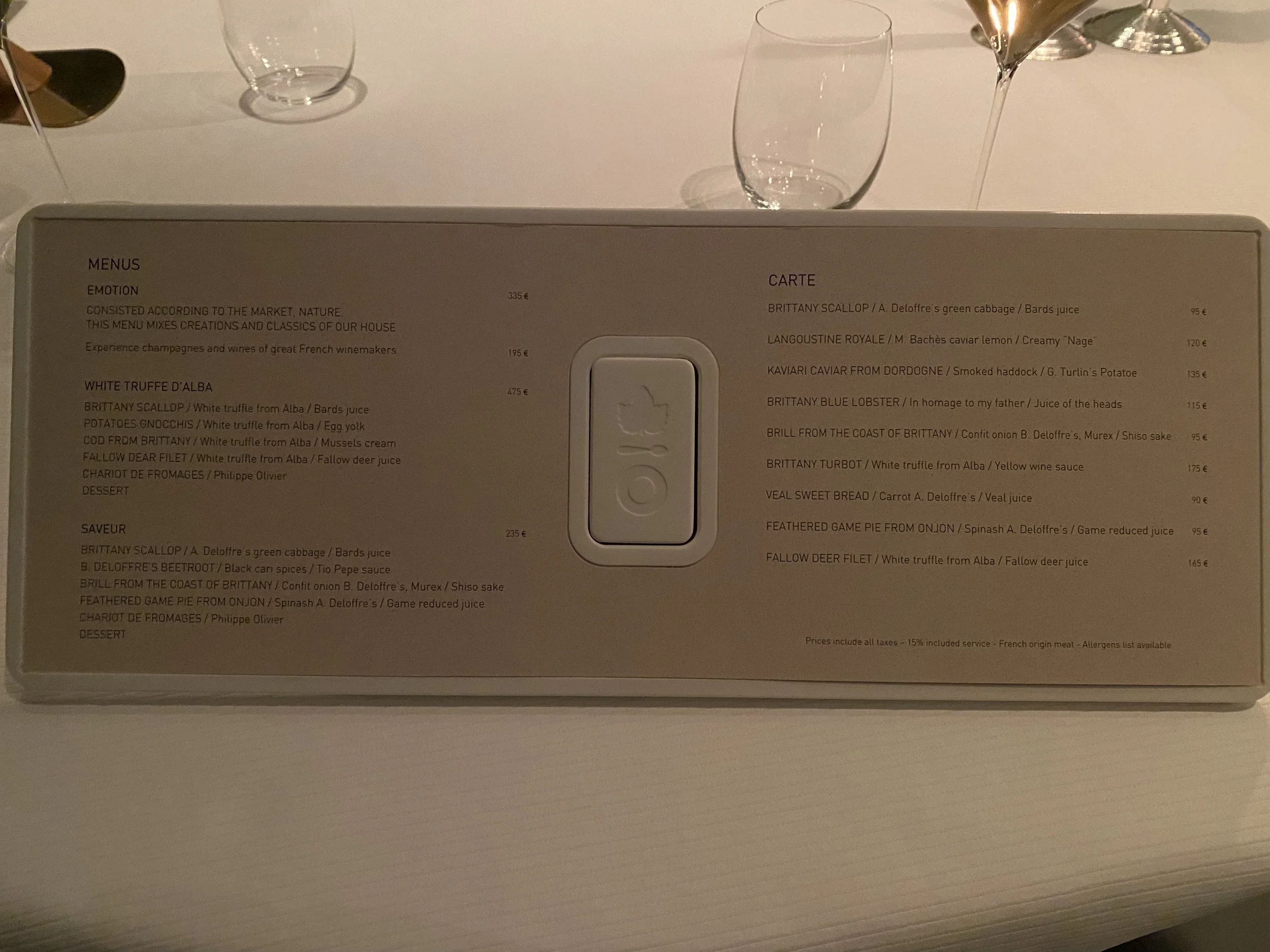 Cost per Person: Tasting menu 335 Euro, Wine pairing 195 Euro
