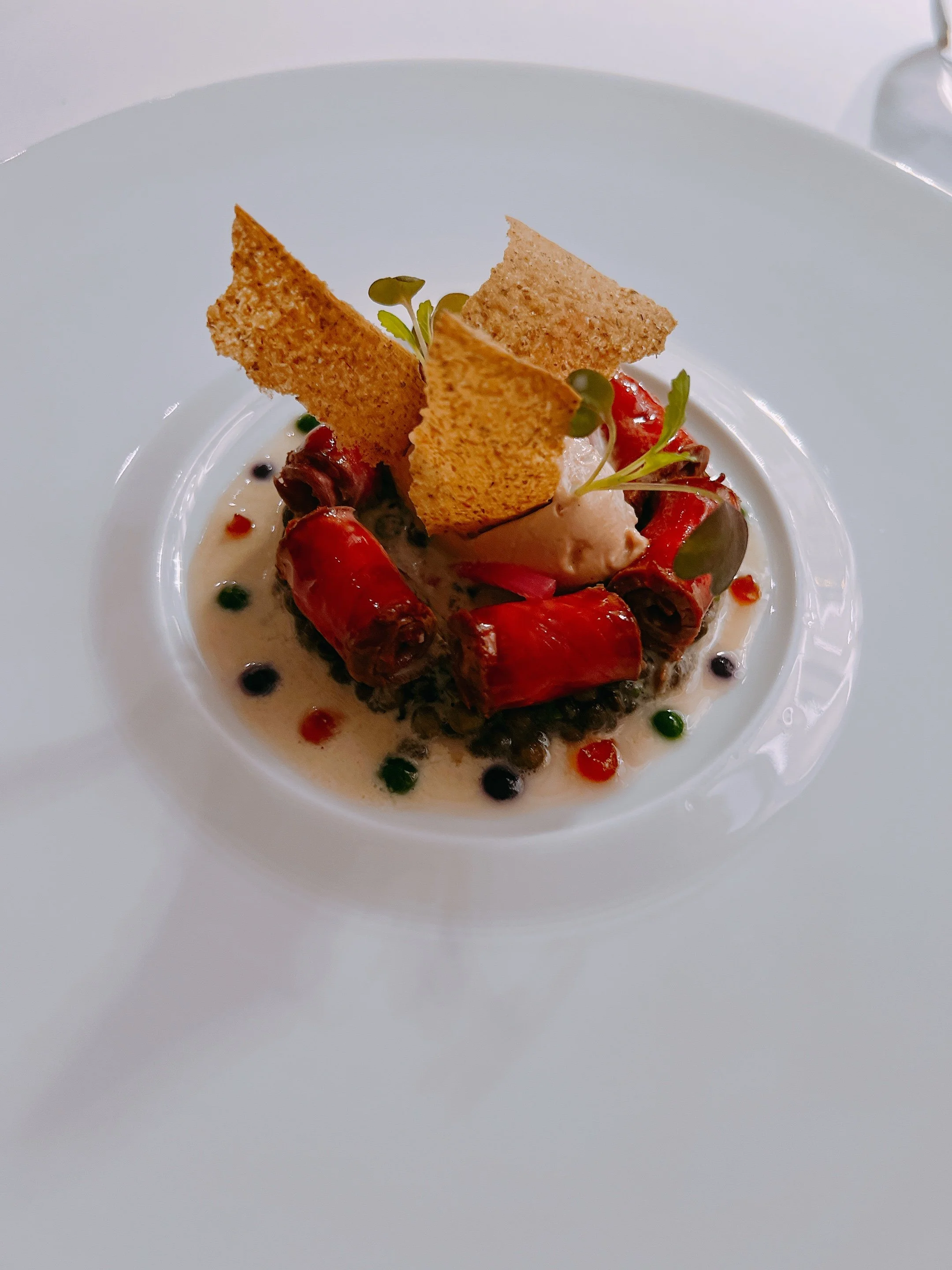 Service throughout our meal was excellent, the (mostly Burgundian) wines we had by the glass were wonderful, pairing really well with one or two dishes (given the median value of zero great pairings for any restaurant, that's actually pretty good). My wife's pescatarian restrictions were taken care of in impeccable style. Initially, all appetizers were strict pescatarian (well, except that she'd argue that frogs are not fish...), even gelatin and eggs avoided. Once we mentioned that she was ok with chicken, a later dish with chicken truffle sauce was served to her unaltered. There was a small hiccup with the main course. By ordering the longest possible meal, we already exhausted all the non-meat dishes, and the waiter was unsure what to serve instead of the lamb. But after conferring with the chef, he reported back that, no worries, there would be a replacement, the chef just didn't have any clue what it might be. If that's not cooking at the seat of your pants, then I don't know what is.