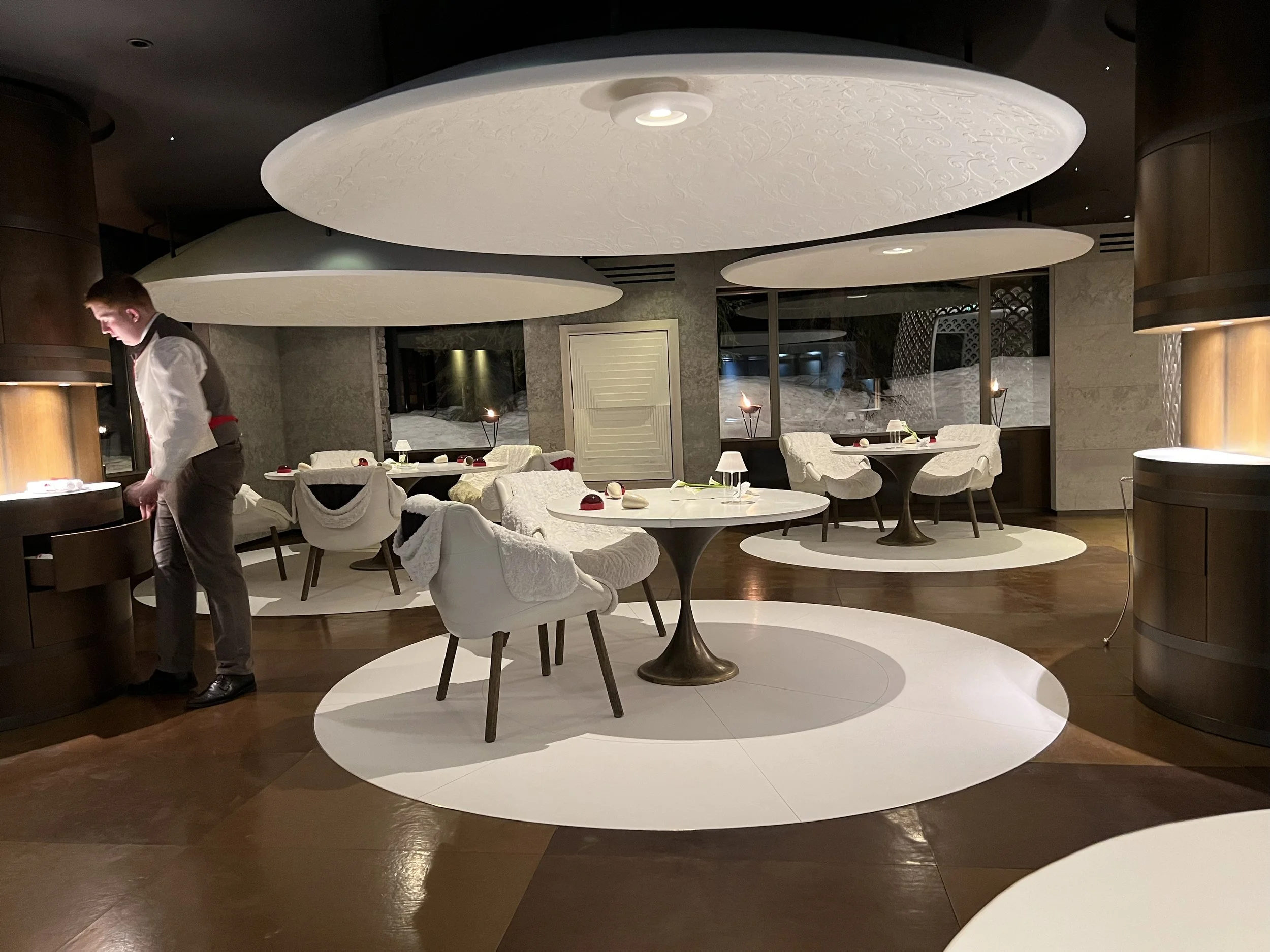 It's a restaurant of superlatives: the highest three-star restaurant (over 1 mile above sea level), one of the smallest (only 5 tables - the only three-stars with fewer seats have either a single table (e.g. Ultraviolet) or counter seating), and open for the fewest days in the year (only four months in the winter season). So making a reservation requires a bit of planning, I suspect that a last-minute reservation is unlikely to succeed.