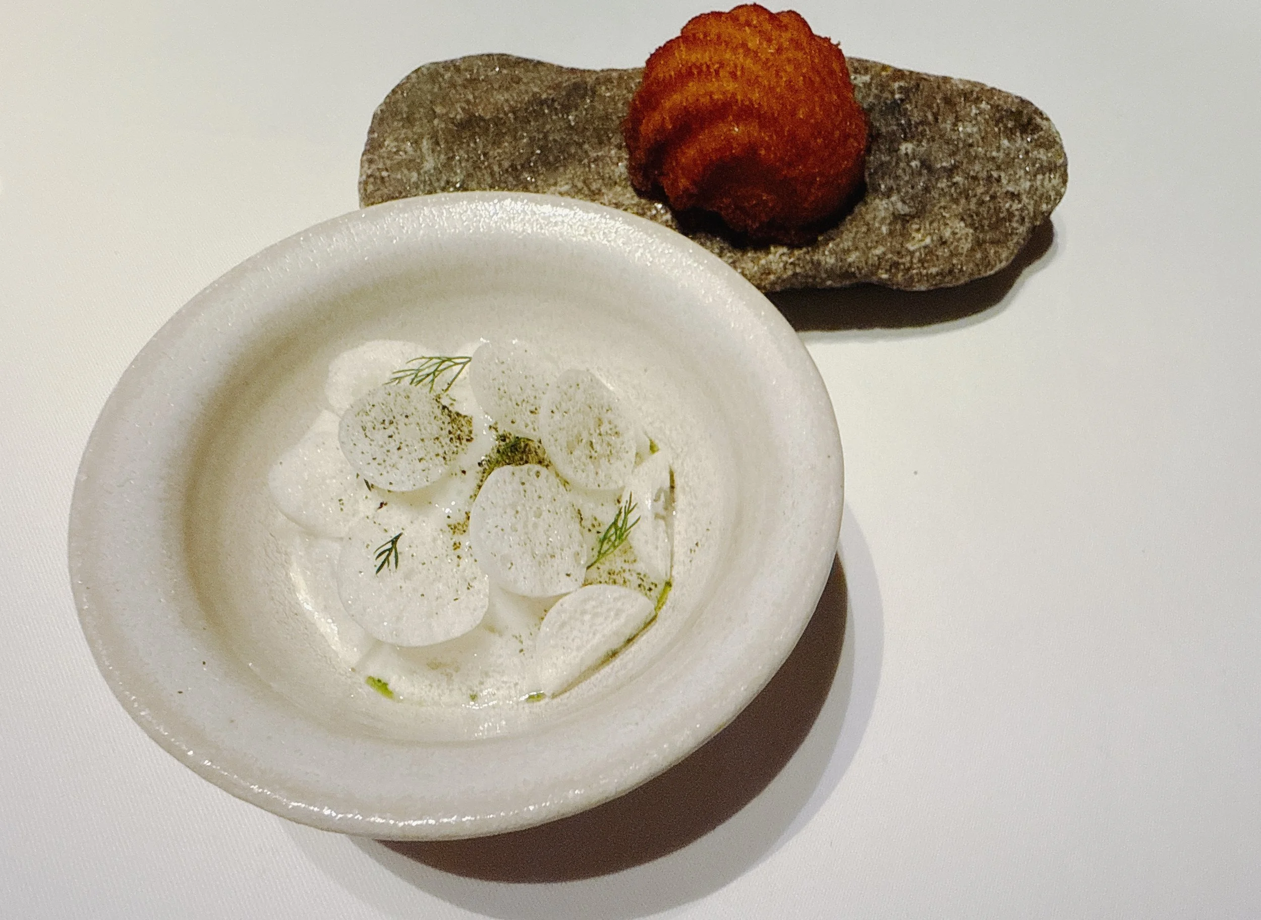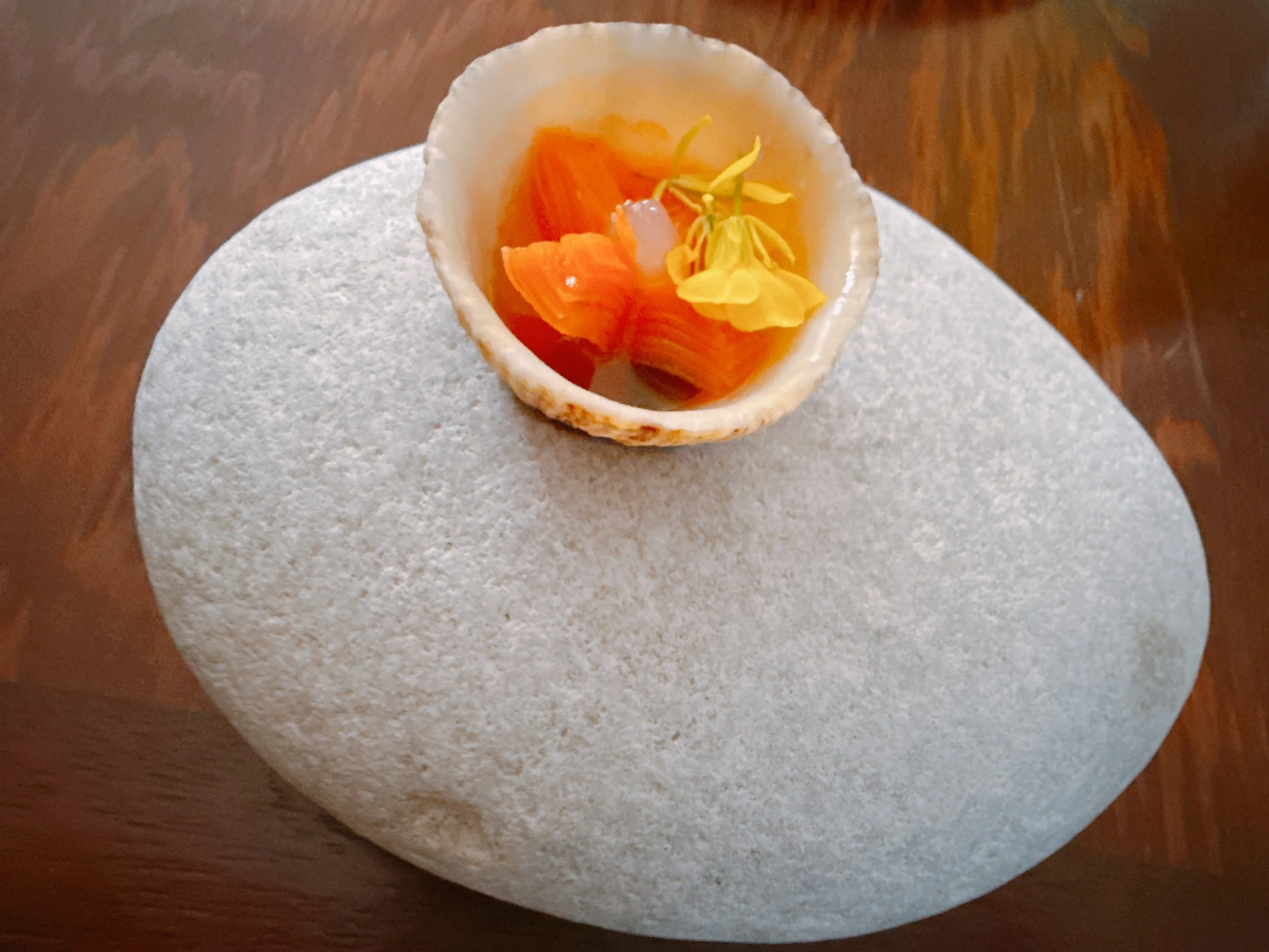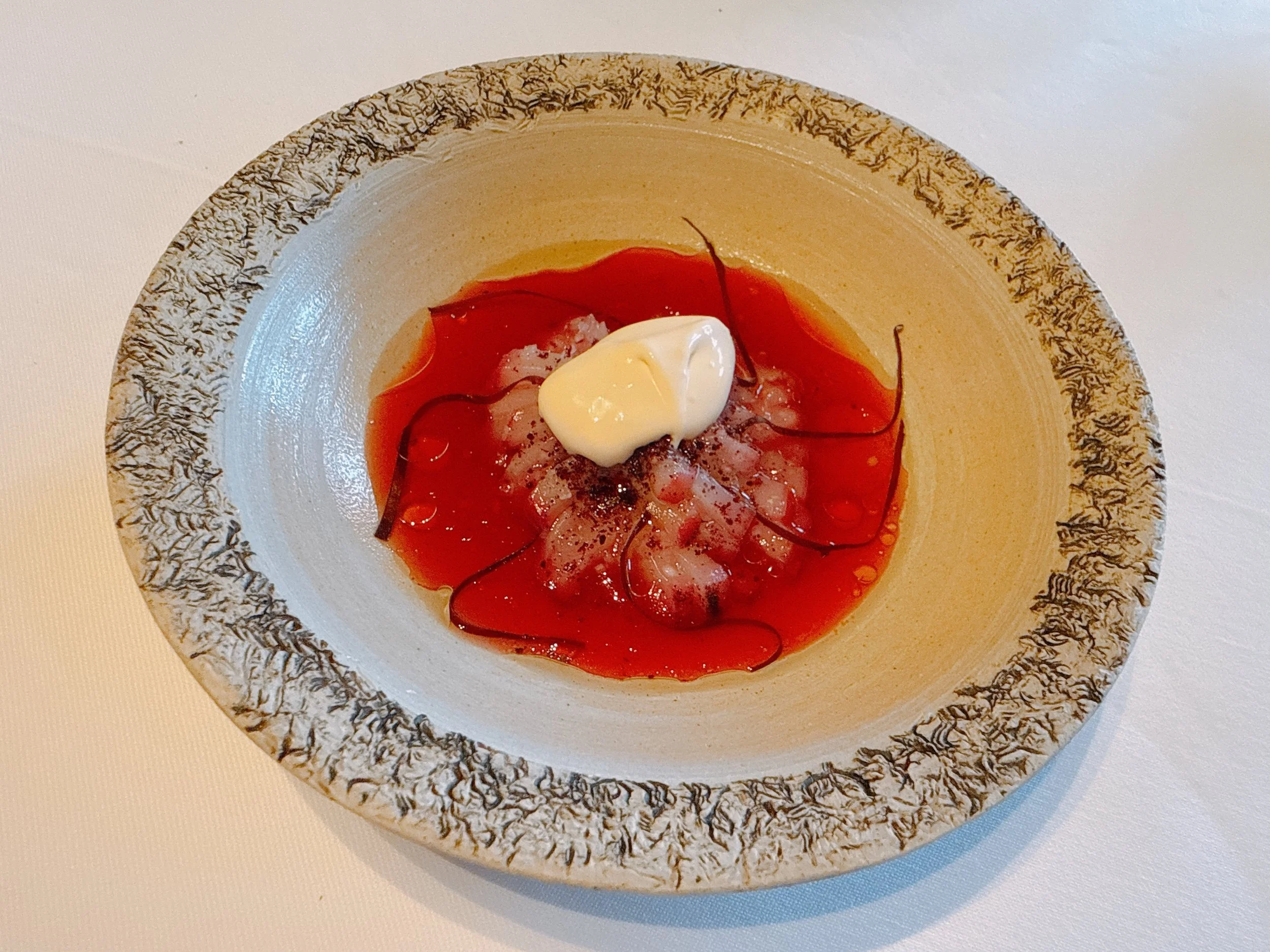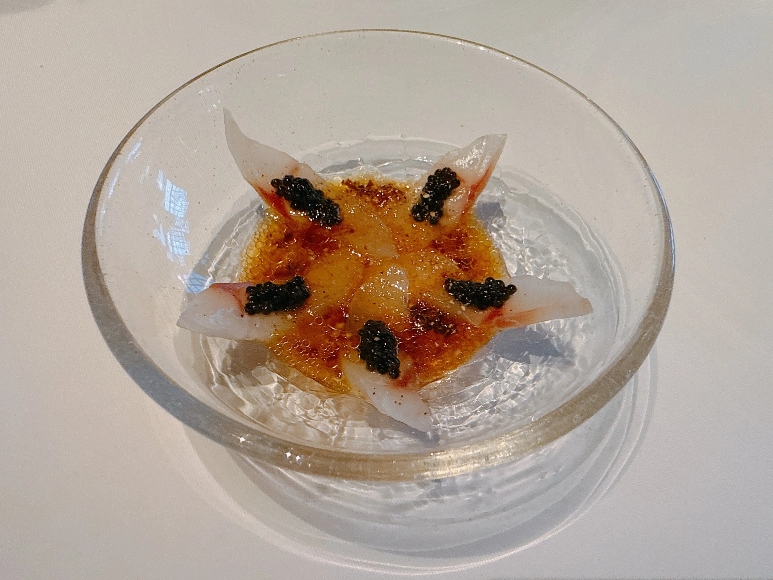 Overall: A menu that featured an impressive range of seafood dishes, often using local ingredients and produce from the restaurant's own farm. The ingredients were cooked expertly and flavors were nicely balanced, as befits a restaurant that is owned by a spice manufacturer. The service was also good, apart from a few long gaps between courses. My main issue with our dinner was the intensity of the flavors. Said intensity increased steadily throughout the meal, which in principle is not a bad idea, but it did so extremely slowly, so that the earlier dishes tasted of next to nothing. It took more than half the dinner to arrive at what I'd consider a reasonable level of seasoning. I was left a bit confused about why the kitchen would go to such extremes, and would probably ask for a salt shaker next time. Ideally though, that shouldn't be necessary at a three-Michelin-starred restaurant 16.