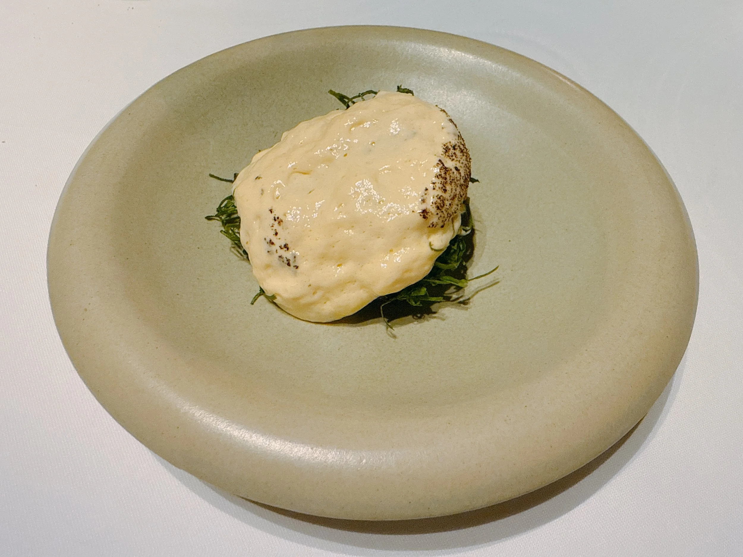 A langoustine was served with morel mushrooms, shaved spinach and a mousseline sauce made with a local honey wine. The sauce on top was warm, whereas the langoustine itself was slightly colder. We were definitely getting more flavor at this point: the langoustine was juicy and a bit sweet due to its marinade, the spinach added some texture, and the sauce had a hint of acidity 17.