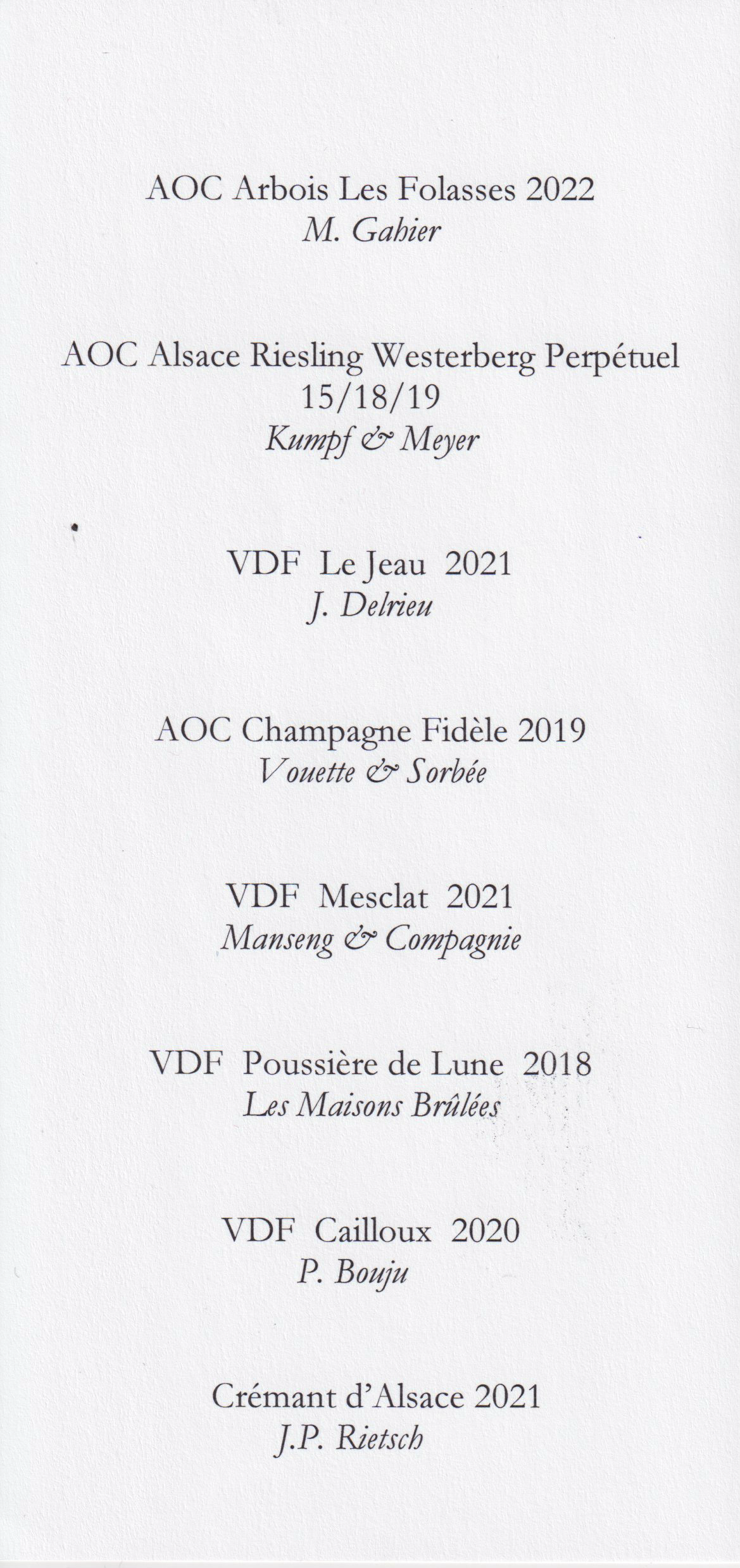 During our visit, only a single tasting menu was being served, so our choices were restricted to the beverages (for lunch, a shorter menu is also available). Among our choices were a non-alcoholic pairing for 105 Euro and an eight-glass wine pairing for 145 Euro. The latter focused on natural wines, and included several quite acidic whites that I wasn't too fond of. But the whites served during the later part of the dinner, as well as the sparkling wines and the single red wine were pretty decent. Ordering a good bottle of wine is probably a good alternative to getting the pairing.