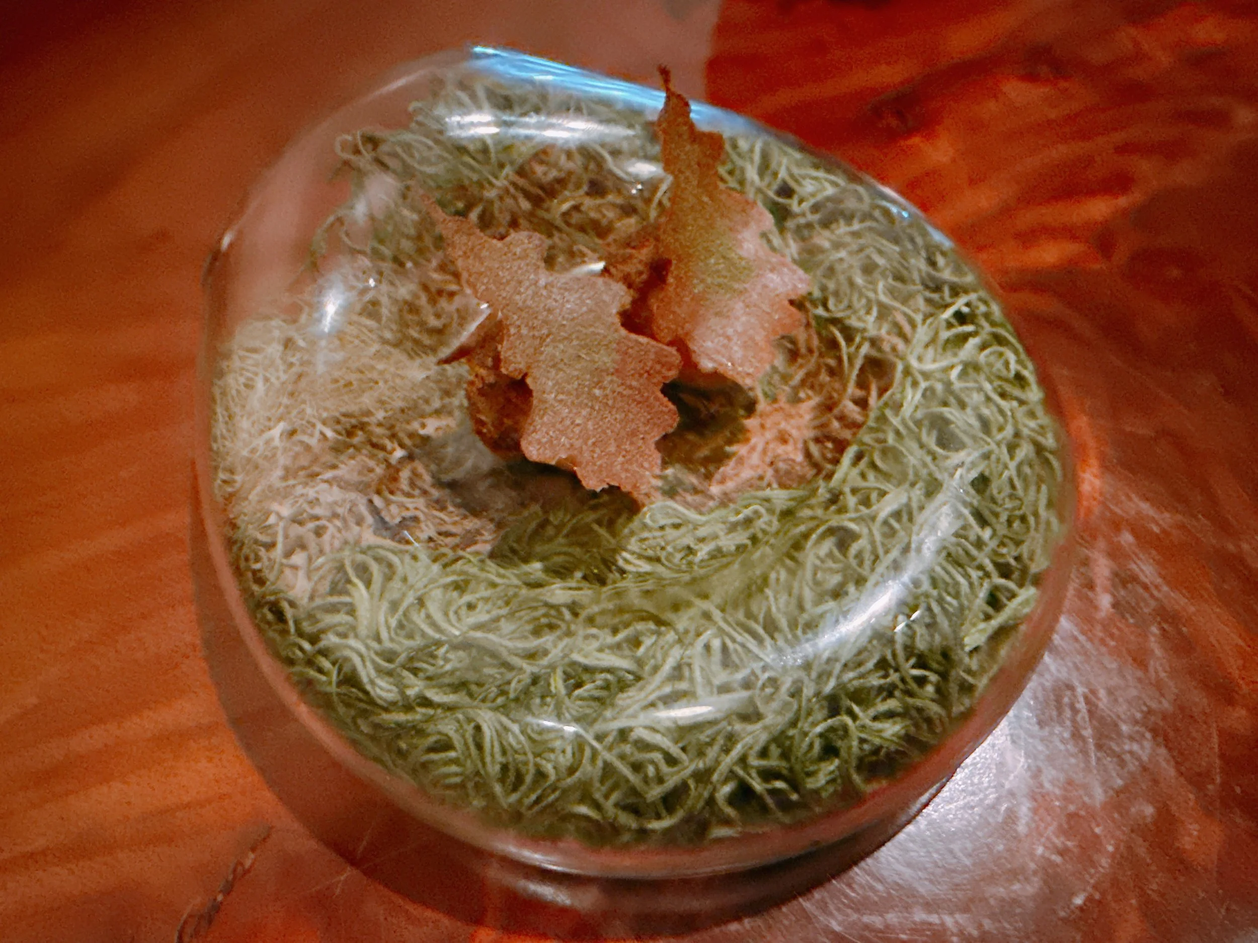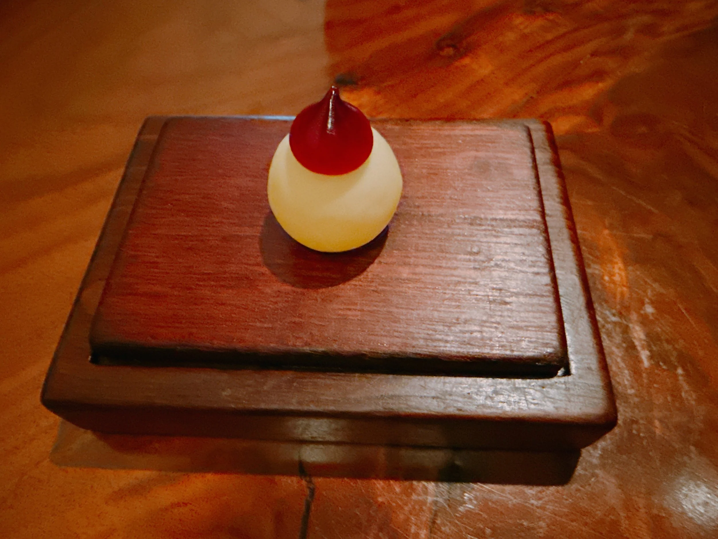 The final savory course was a lightly poached halibut, with smoked pike roe, grilled spinach, and a crustacean reduction made with French butter and chives. The fish had a solid (but not quite firm) texture, and felt maybe a touch overcooked. The sauce was savory and lightly acidic, and the spinach added a vegetable note. Another lovely dish 18.
