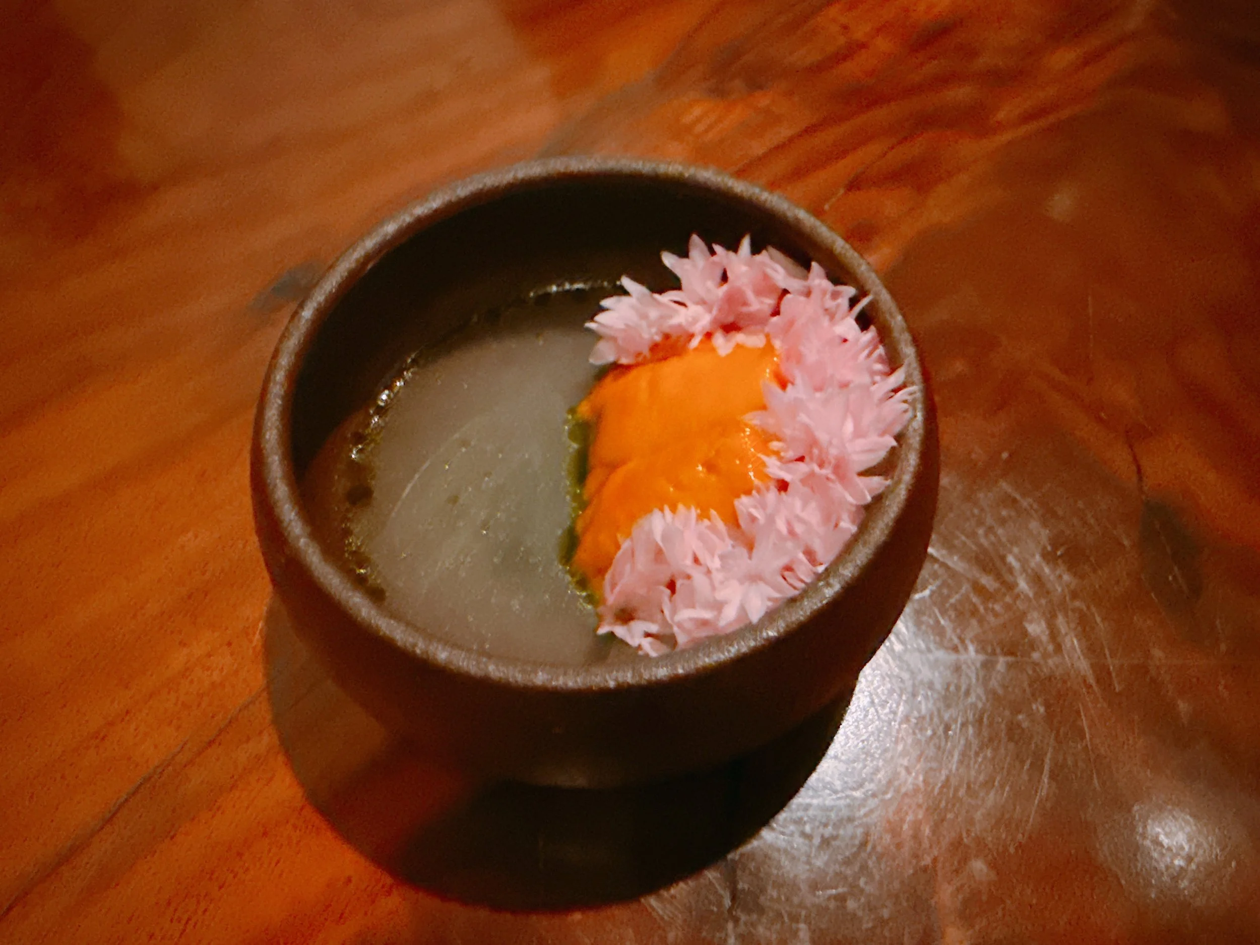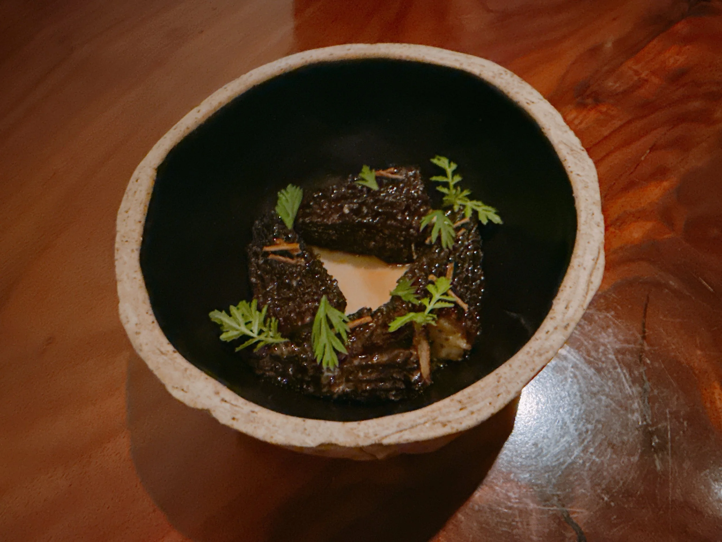 Morel mushrooms that were filled with a potato puree sat on top of a brown butter/porcini mushroom custard seasoned with dashi. The grilled morels tasted sweet rather than earthy, maybe due to the sauce. I would have preferred this to be a more savory dish 17.
