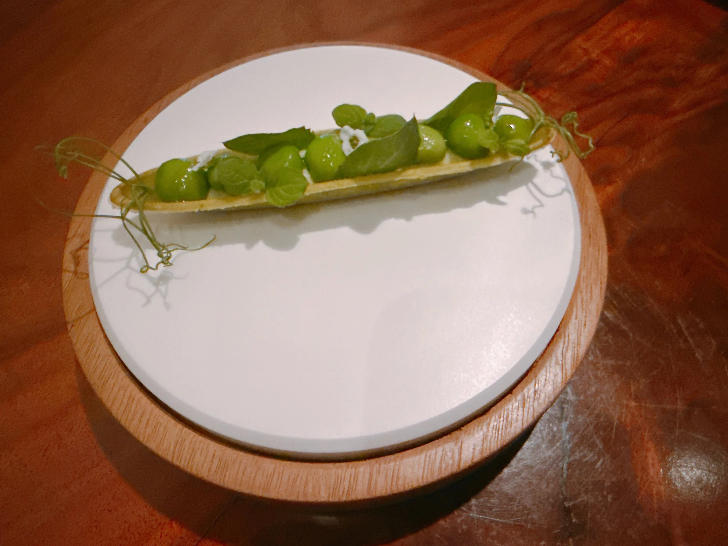 The next dessert was a pea pie, filled with English peas, a mint cream mousse and spring herbs. The dish had a nicely crunchy base, and the sweet mousse worked well with the peas 17.