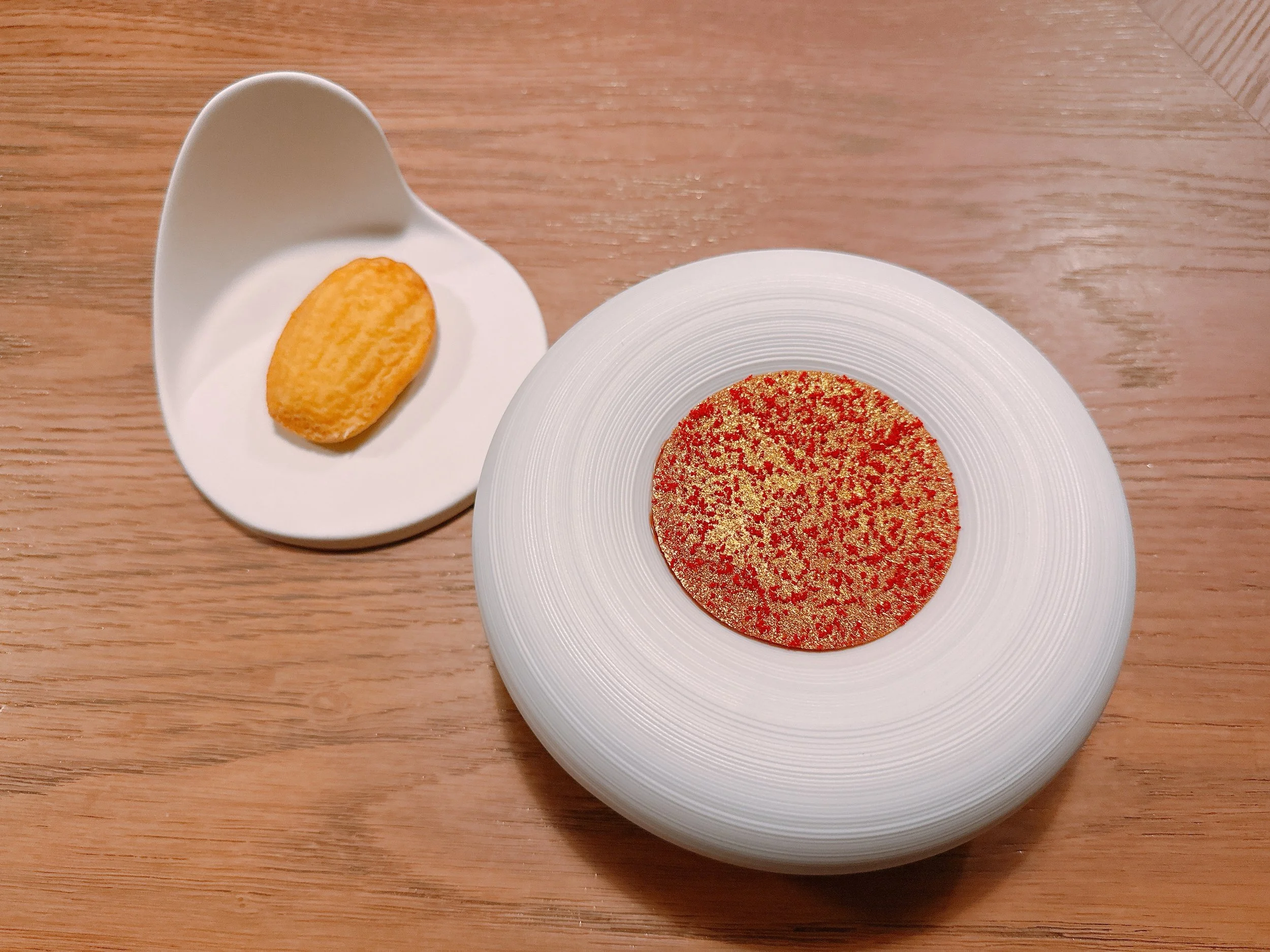 Strawberries and cream - the classic combination. Here, the strawberries came from Japan, and were paired with three sauces that were based, respectively, on strawberries, matcha and local honey. There were some brown butter and raspberry crumbles, and finally an underbaked Madeleine (“since cookie dough is better than cookies”, the chef explained). A dessert that, even though it had quite a number of ingredients, ended up feeling homey and familiar. This dish also wasn't that sweet, in fact the sweetest part were the raw strawberries 16.