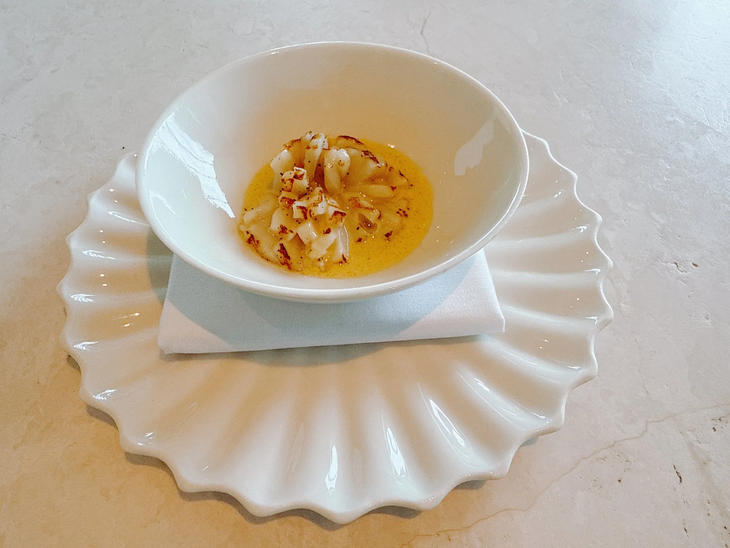 A broth made from grilled vegetables was topped tableside with shaved winter truffles from Australia. This “soup” tasted of concentrated roasted vegetables with light notes of nutty truffles 17.