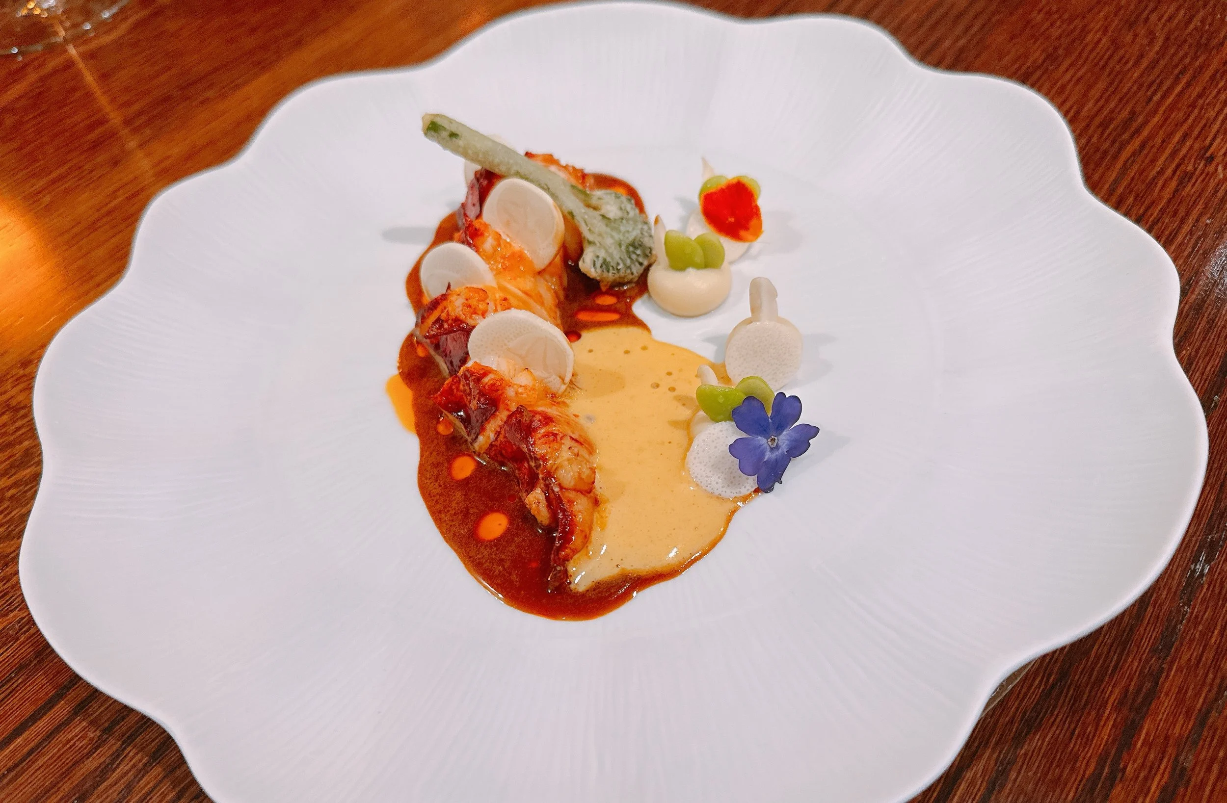 Blue lobster from Eastern Scheldt (an estuary in the Netherlands) was served grilled, with a jus made from the lobster's head. On the side: a broccolini tempura, hearts of palm and a mousseline made of crustacean butter. More sauce was left at our table to be added to the dish as desired. The lobster was excellent: flavorful and very tender without being overcooked. The sauces were also full of flavor, but the mousseline was unfortunately extremely salty. The heart of palm felt fresh with a light crunch, but I wasn't a fan of the overly bready and flavorless broccolini. The rest of my dining party disagreed and thought that the tempura vegetable was great - you can't argue about taste, I suppose. In any case, a very compelling lobster dish 18.