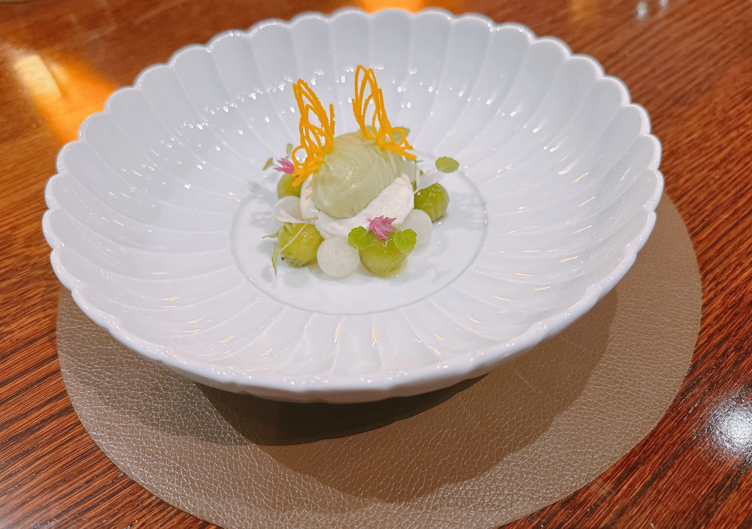 A palate cleanser of sorts arrived next. Kiwi sorbet sat on top of a yogurt foam and a matcha cream. This was a generally light, sweet and refreshing dish. We particularly liked the little white balls of sake granita. The matcha with its bitterness added a bit of heft to the presentation 17.