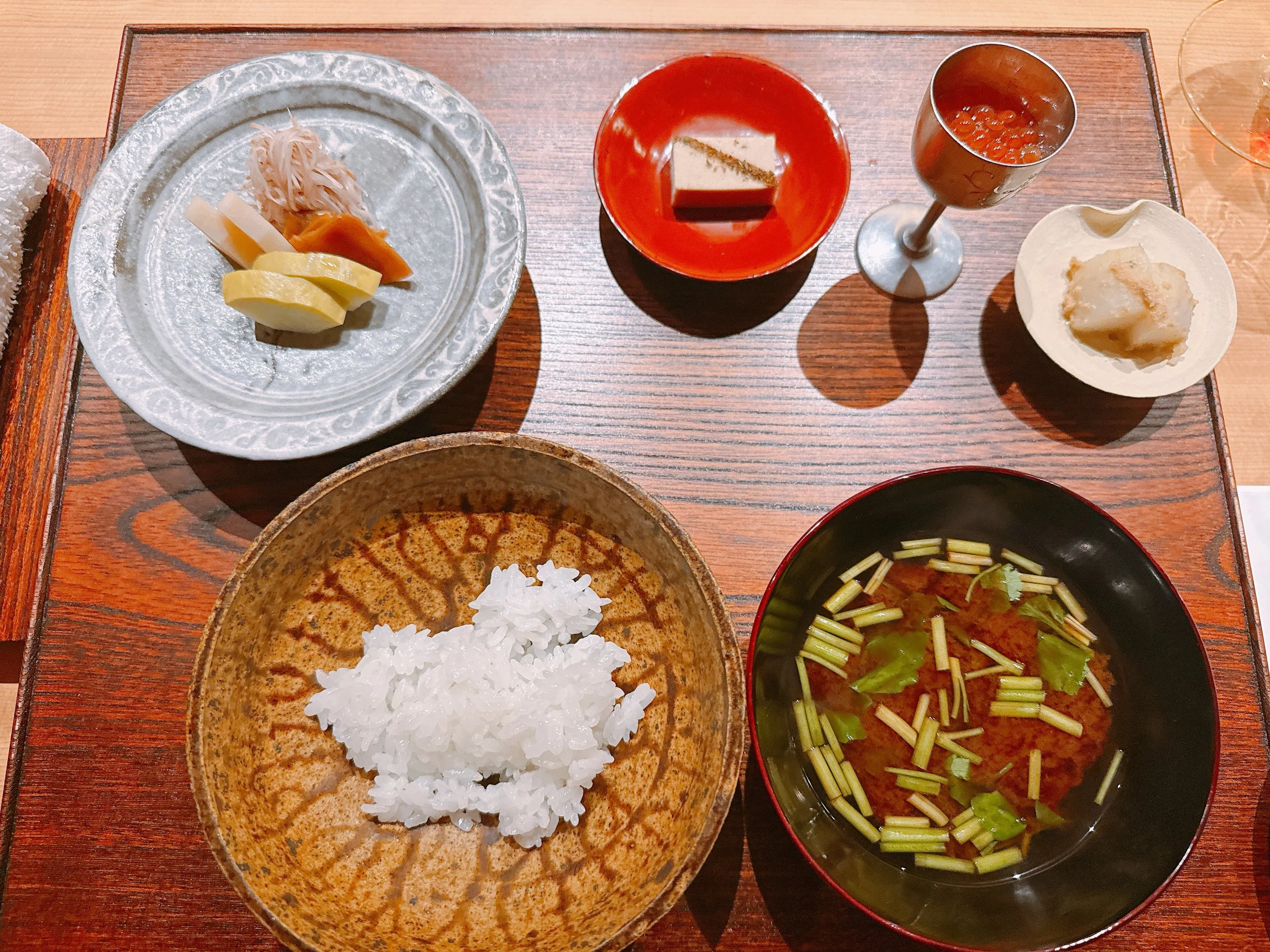 As is common for kaiseki restaurants, there was only a single fixed menu. Usually priced at 40000 JPY ($260), it cost 50000 JPY ($325) on my visit due to the inclusion of seasonal (and expensive) matsutake mushrooms. Two wine-and-sake pairings were offered for 22000 JPY ($145) and 40000 JPY ($260), respectively. These eight-glass pairings actually differed only in their first and the last wines - the six pours in the middle were the same. The first glass was either a 2014 Henriot or a Krug champagne, and the last either a 2010 Jacques-Frédéric Mugnier Nuits St. Georges 1er Cru “Clos de la Maréchale” or a 2008 Olivier Bernstein Bonnes-Mares Grand Cru. The latter choices were probably better, but it’s debatable whether they were worth doubling the cost of the pairing. Overall, the paired beverages were good, but not exceptionally so. Interestingly enough though, two of the sakes were served warm and hot, respectively - a first for me in a fine-dining setting.