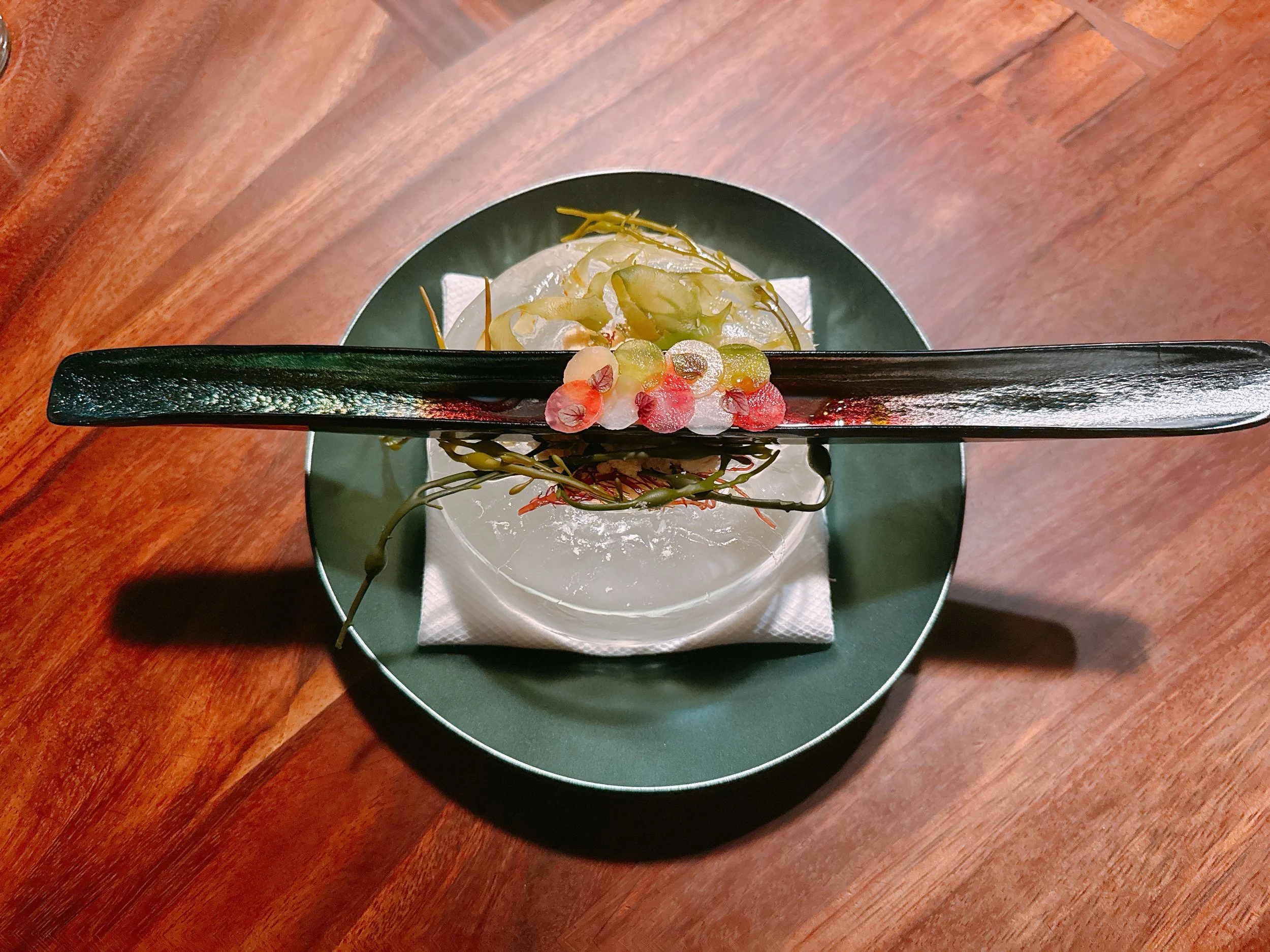 It turned out that not only the interior design was first-class here, but also the service. Led by veterans from The French Laundry and two-Michelin-starred Harbor House Inn, all interactions with the staff were incredibly smooth, though maybe a tad more formal than one might expect for laid-back Sonoma. I was also positively surprised that we were asked for feedback on new dishes and on the new non-alcoholic pairing - one of us was the first person to try it in its entirety (very good, reportedly). Definitely a sign that the restaurant is not planning to rest on its laurels. Also appreciated: there was just a single seating, so no rush to vacate our table, as we would have had to at many other starred restaurants (SingleThread, The French Laundry, etc).