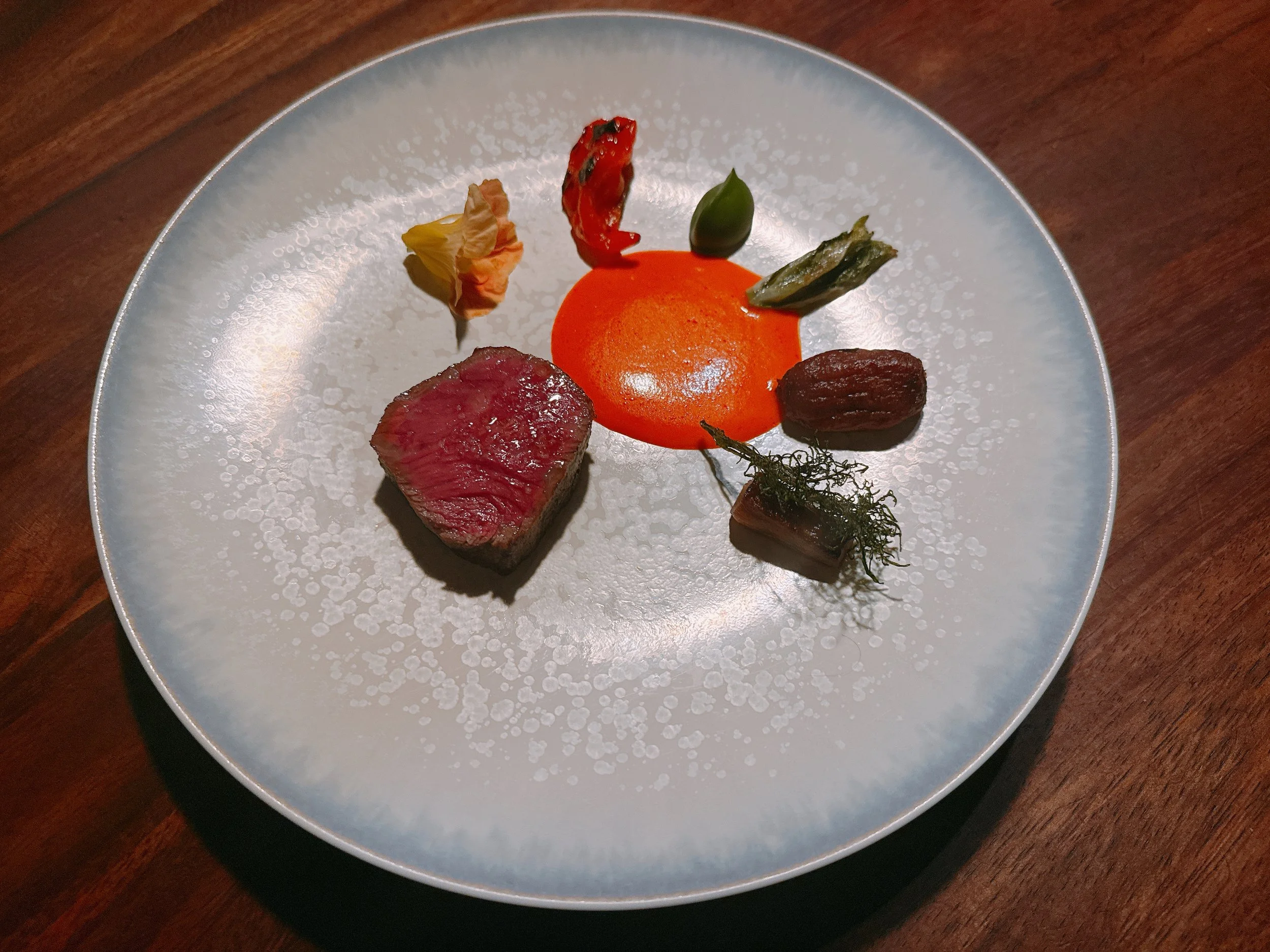 “Enclos” is a new restaurant in the city of Sonoma in California, situated about half a block east of the main town square. Having opened in December 2024, it went straight to two Michelin stars in 2025, an impressive feat for a chef's first stand-alone restaurant. Reservations open on Tock every two months and sell out within minutes - one of the hottest restaurant tickets in Northern California, for sure. So we were happy to dine here on a balmy Saturday evening in mid-November.