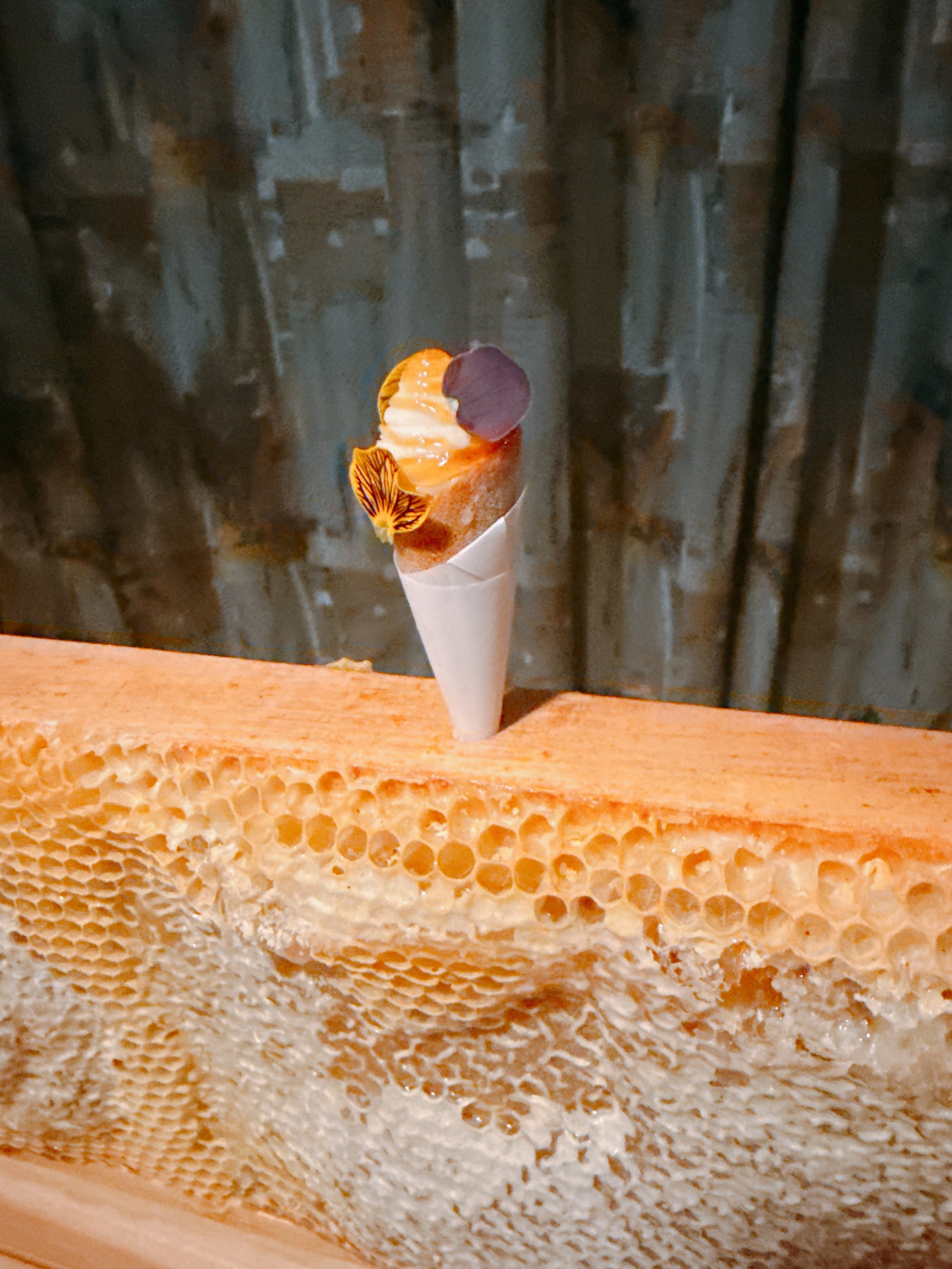 Our final savory course featured wagyu beef, again prepared three ways: as a filet, as dry aged charcuterie and as a smoked short rib cube lacquered with preserved magnolias. Starting from the end: the short rib almost melted in one's mouth - very nice. Even better was the lovely, peppery beef sausage. The beef filet was a step down, unfortunately, and too chewy for my taste. What blew me away about this dish though, were the sides next to the filet: a nasturtium flower, a habanada pepper, green garlic, broccoli, a Nantes carrot, a pickled and fermented eggplant, and a sauce made from fermented peppers. Except for the flower, which was mainly decorative, these sides were bursting with flavor. Some were pickled and acidic, others smoky, and all not just very distinctive but also delicious. With a better cut of beef this would have been a three-star level dish 17.