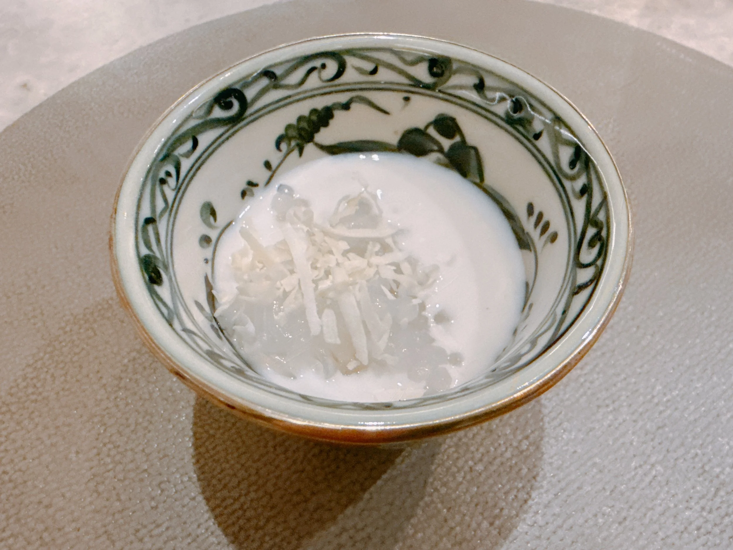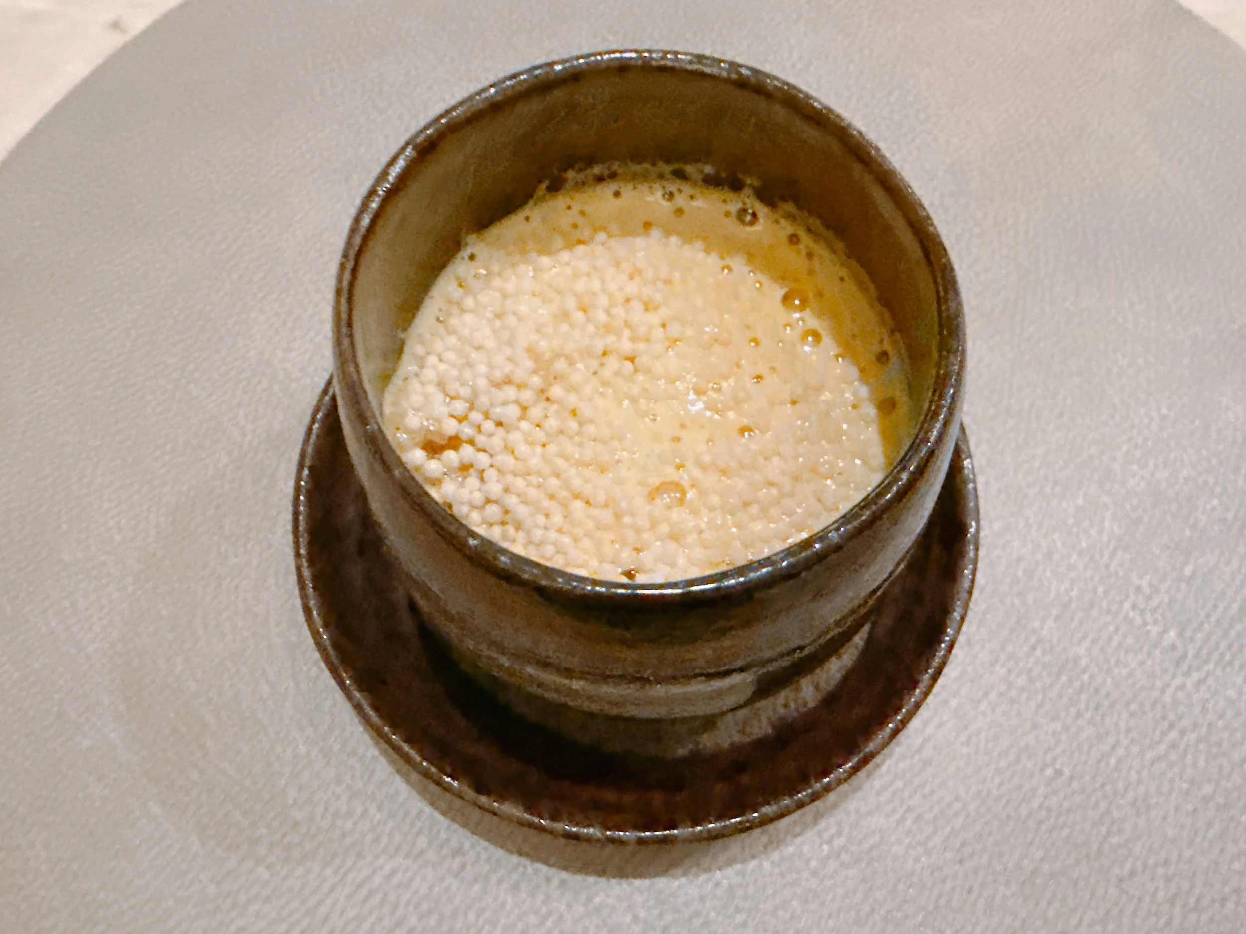 Our first dessert was a dish made with tapioca pearls, sago, coconut cream, persimmons and limes. It tasted mostly of coconut rather than fruit, with the tapioca pearls providing texture. Not bad 15.