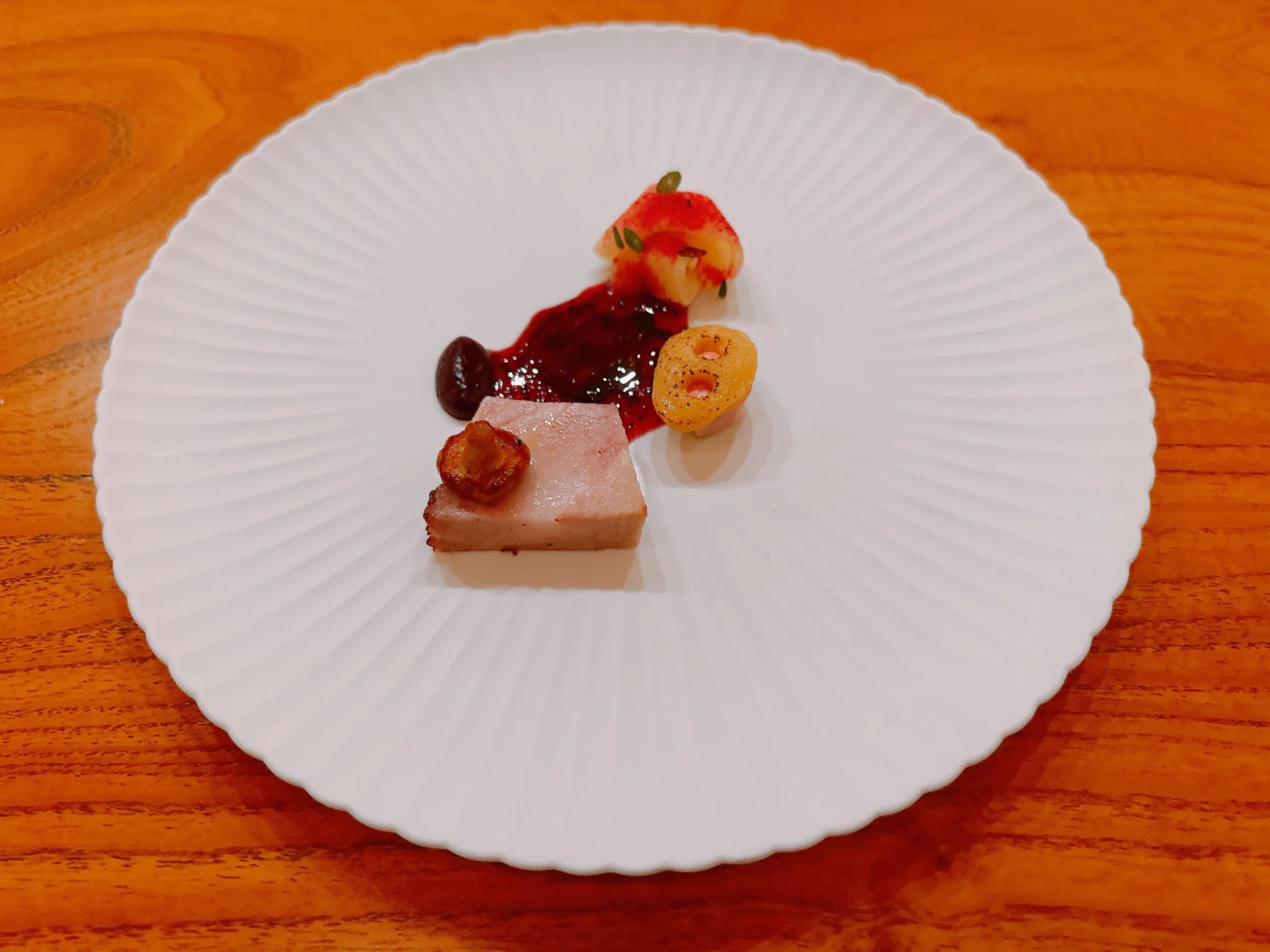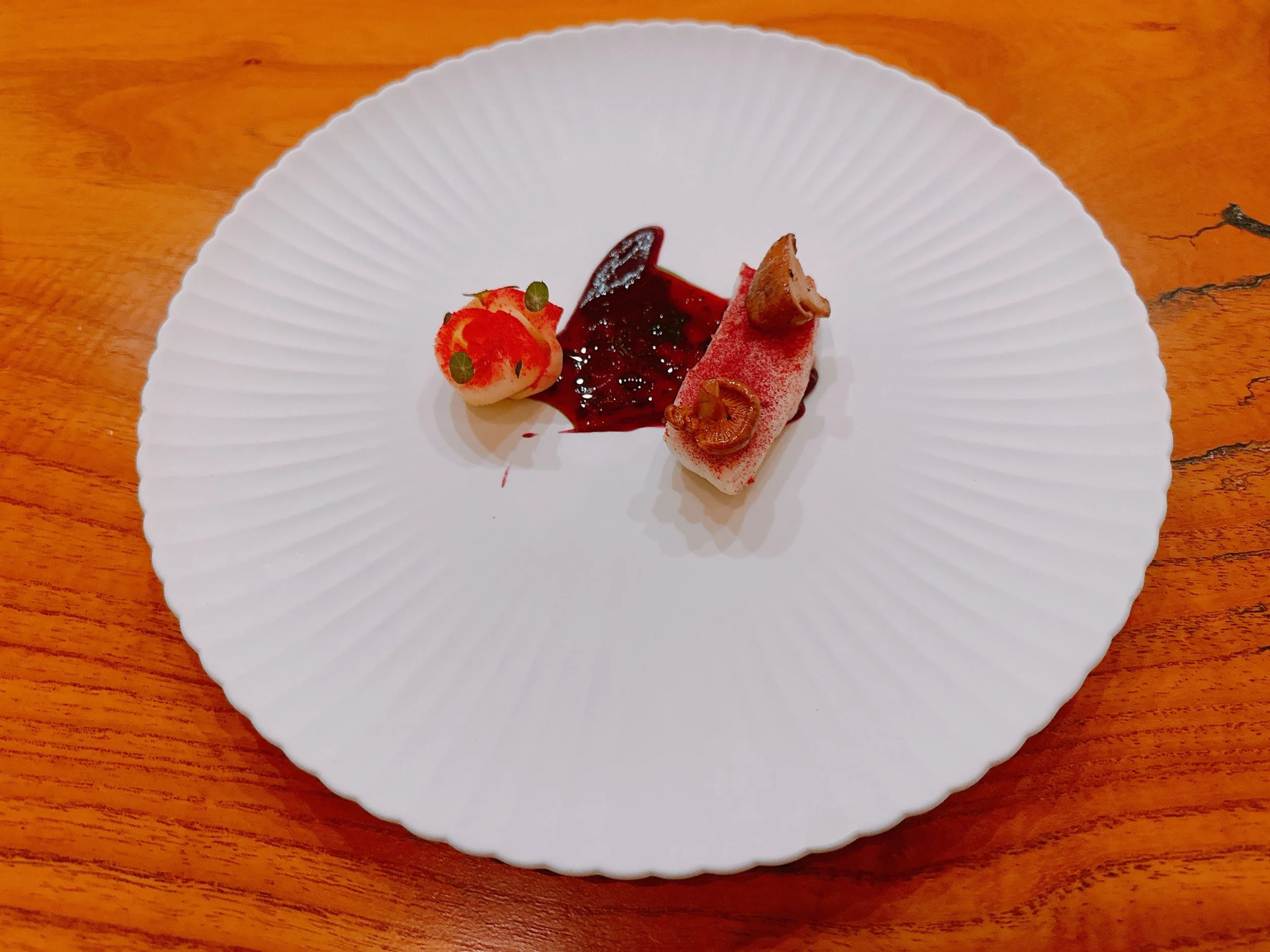The following dish, sadly missing a picture, was an akami tuna tartare paired with a soy jelly ice cream, some crunchy quinoa and a wafer made from dashi. The wafer was a bit sweet, so maybe not the right fit for this dish, but the tartare itself was nicely seasoned 16.