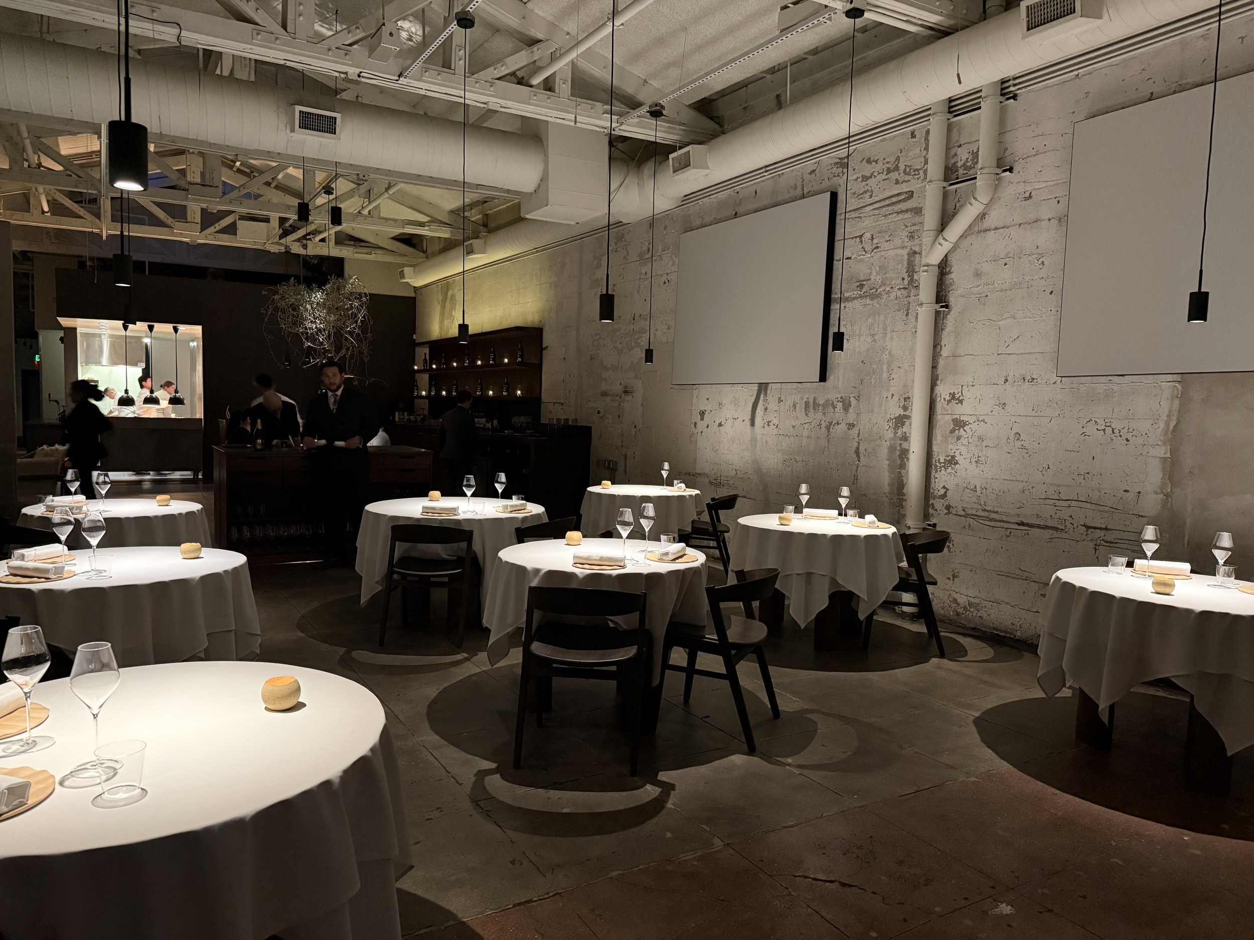 Our destination that night was “Kiln”, the sole Michelin-starred restaurant in a part of town where “nice restaurant” long used to be synonymous with serving a pre-symphony prix fixe. Kiln opened in May 2023, and is run by former employees of “Sons & Daughters”. Chef John Wesley prepares a Californian cuisine that uses lots of local produce, and gives it a contemporary spin by occasionally employing techniques such as fermentation and cooking over coals.