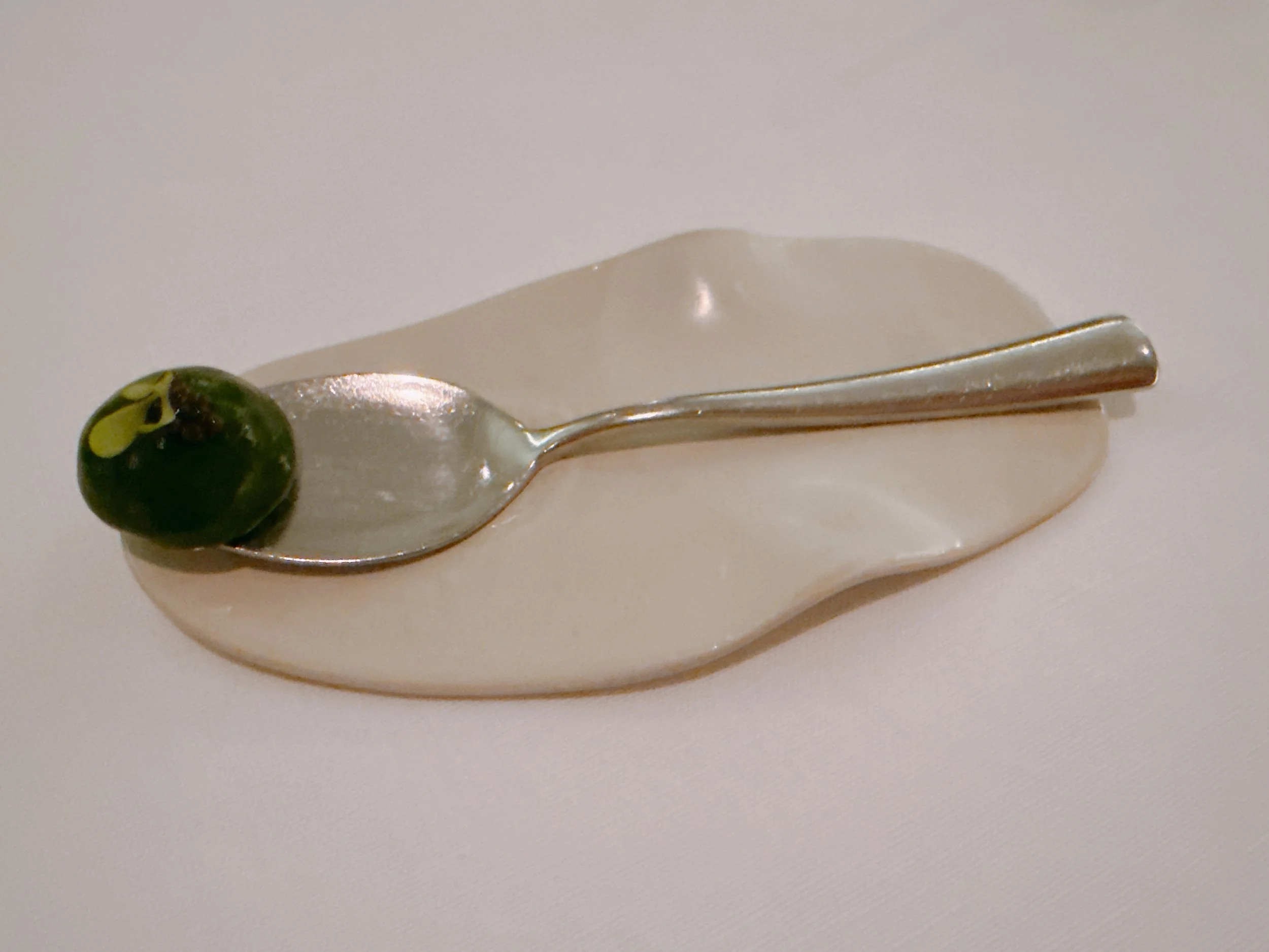 The final amuse bouche was served on a spoon: it was a single bite made from watercress, appearing both as a gelee and a mousse. A dollop of caviar sat on top. Strangely enough, this dish had practically no flavor. There was a hint of a spicy aftertaste from the watercress, but otherwise this was just a taste-free foamy mousse 11.