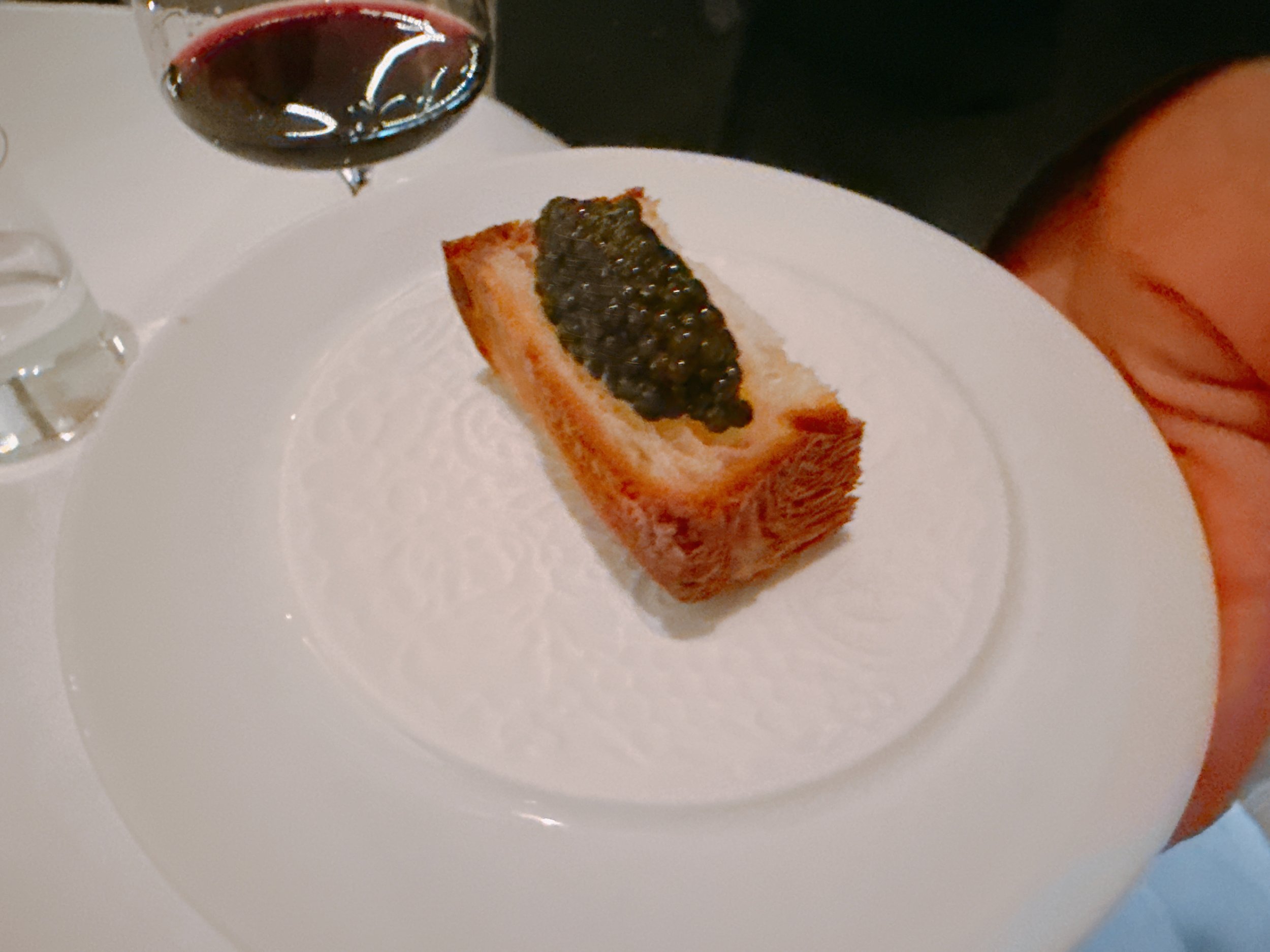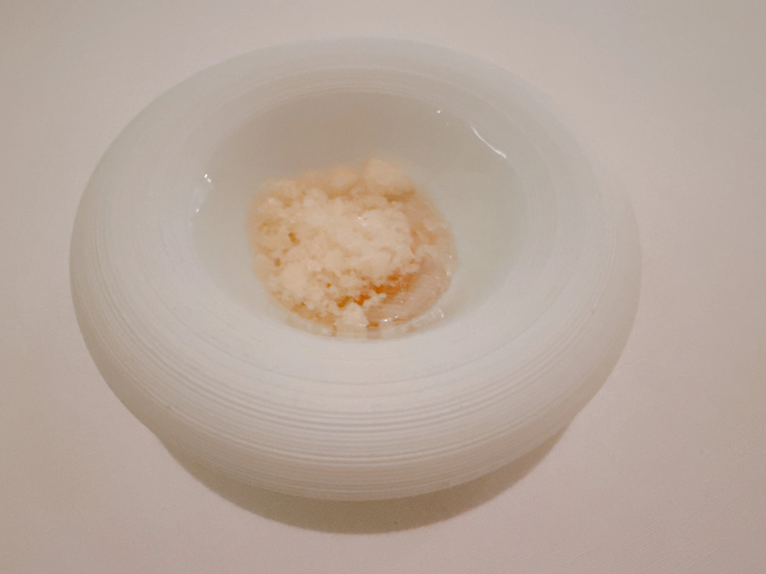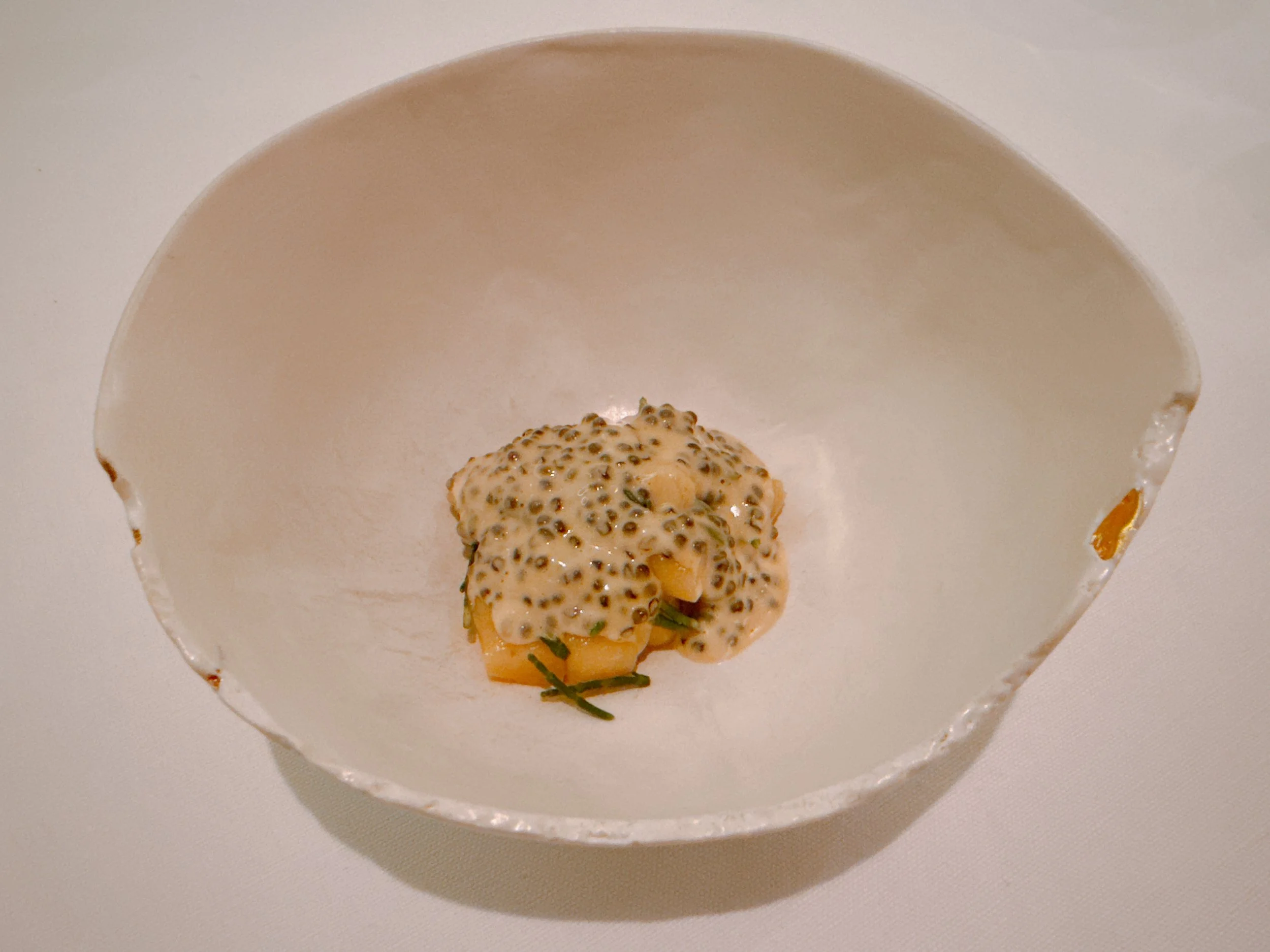 The following bite was a bit of an intermezzo: a piece of croissant topped with caviar. Not bad: one first tasted the salty caviar, and that was followed by the crunchy, buttery croissant. Somewhat hard to rate since it was literally just the combination of two components, but definitely enjoyable 16.