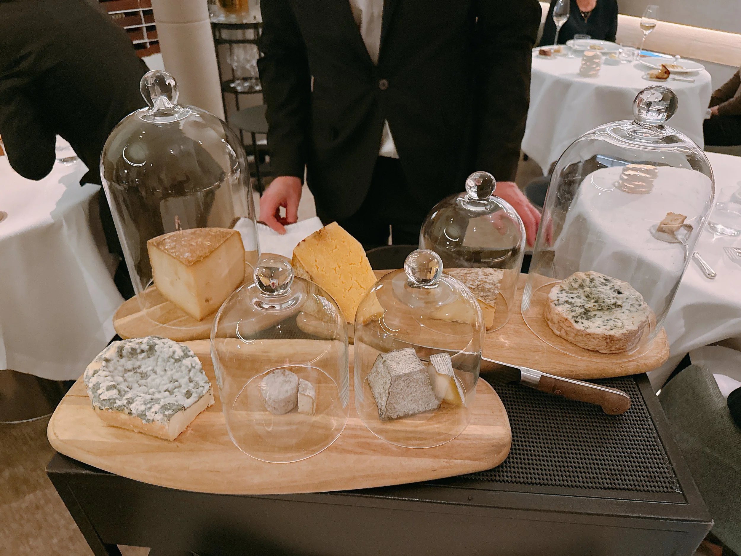 At this point, it was possible to add a cheese course, with cheeses selected from a trolley (for 25 Euro / $30). There were “only” seven different kinds of cheese, so I actually managed to sample them all. They were a decent mix: some were creamy, some almost dry, and I was instructed to eat the non-goat cheeses (including a blue cheese) before graduating to the goat's milk cheeses. Not bad, but also pretty basic for a cheese course in France. Not rated since cheeses can vary so much.